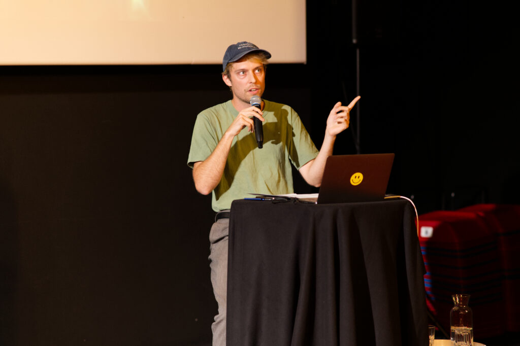 Photo 4 – Projection d’une sélection de courts métrages « À hauteur d’enfants ». Sur la photo : David Noblet, réalisateur et compositeur du court métrage musical Sur les flots. ©Laura Lavigne